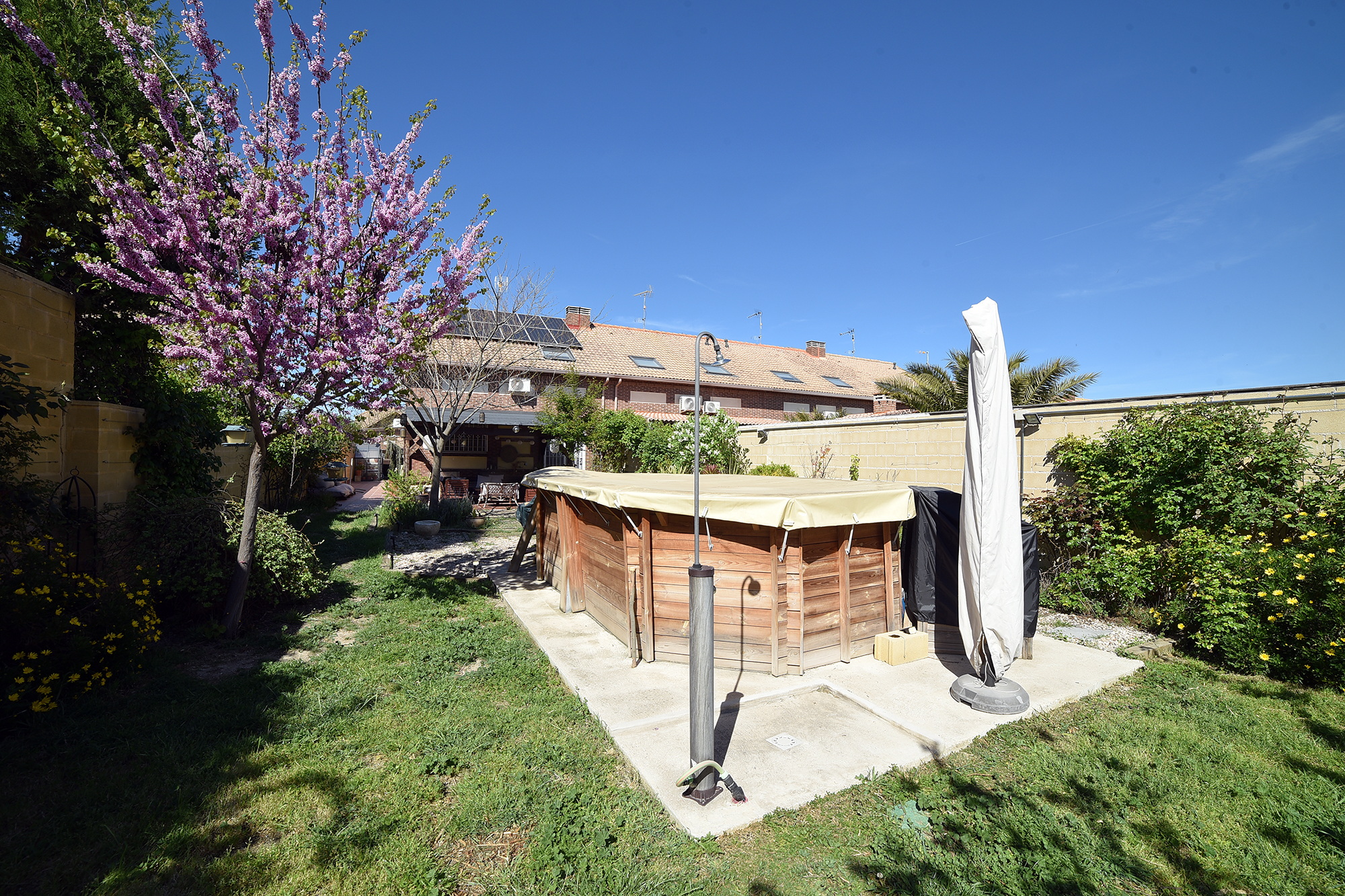 - Otras características destacadas: chalet pareado de posición exterior, con terraza, aire acondicionado, calefacción, piscina, garaje con dos plazas, 3 habitaciones y 3 baños.